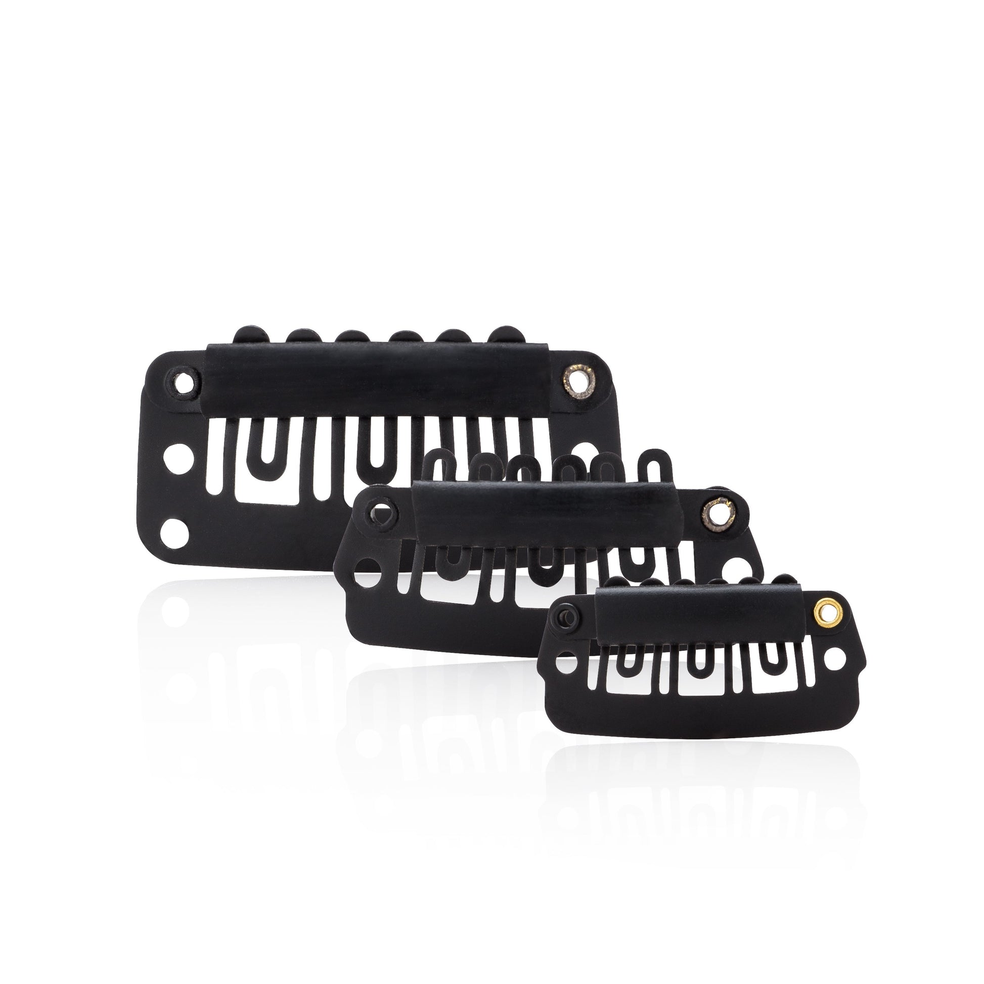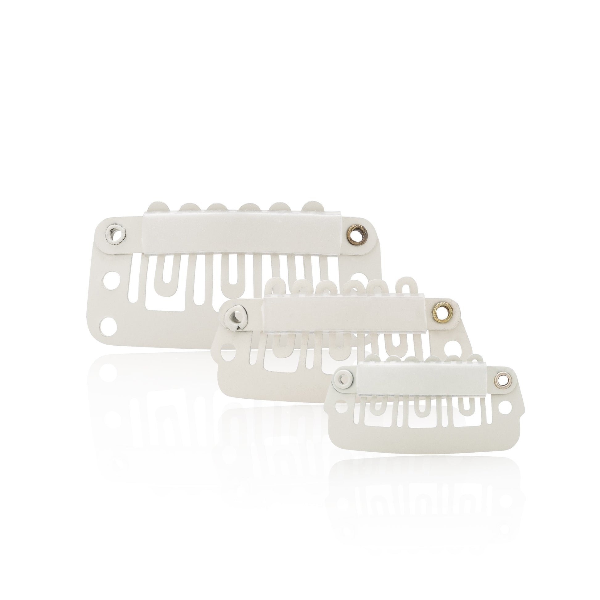 These clips can be sewn into hair systems for easy application. Clips come in packs of twelve. There are four types of clips to choose from: